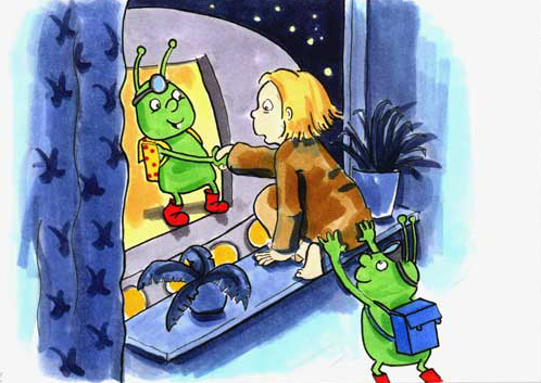 öffneten sie ihre Schulranzen und warfen dem Monster eine Decke,