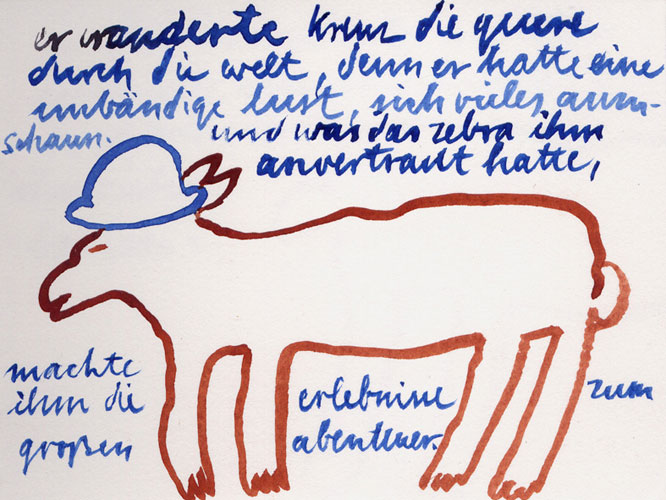 anzuschaun. und was das zebra ihm anvertraut hatte, machte ihm die